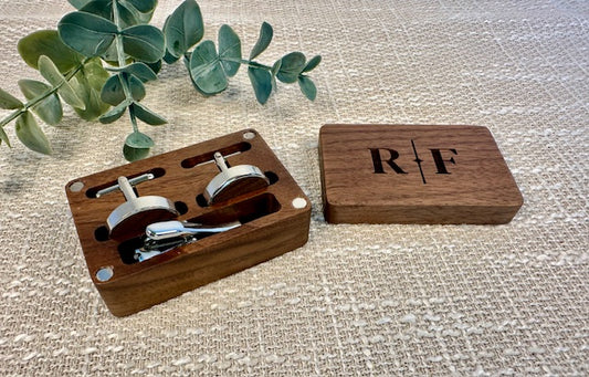 Cufflinks & Tie Clip Set | Engraved Box (Customizable)